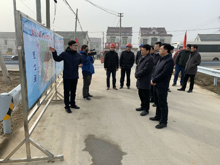 2019年2月21日上午,淮安市副市長肖進方一行深入我公司承建的淮安高鐵新區水系調整工程、茭陵一站引河治理工程施工現場調研指導,市政府副秘書長李金平、市水利局局長尤其中、淮安區區長施恩佩,市水利局、生態文旅區管委會、市白馬湖建管辦有關領導、淮安水控集團副總經理張永國、建設處主任郝飛、水資源公司董事長王樂東、我公司法人代表、總經理尚超軍等相關負責同志隨同視察。肖市長一行分別聽取了現場建設單位負責人對各自工程建設情況、施工進度及建成后的工程效益情況匯報,然后查看了項目施工現場,他肯定了項目建設前期取得的成績,對施工過程中存在的問題他提出了三點要求:一是要克服困難,迎難而上;二是要加快汛期前工程建設,高鐵新區水系調整項目中烏沙干渠在3月中旬要具備灌溉條件,茭菱一站引河在汛前要具備防洪排澇條件;三是工程必須保工期、保質量、保安全,爭取早日完工。
