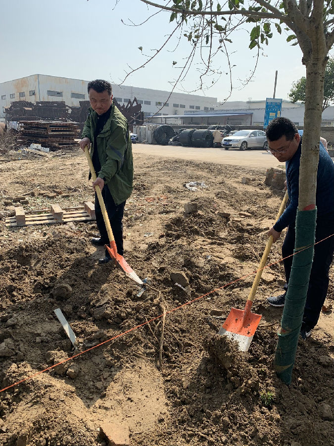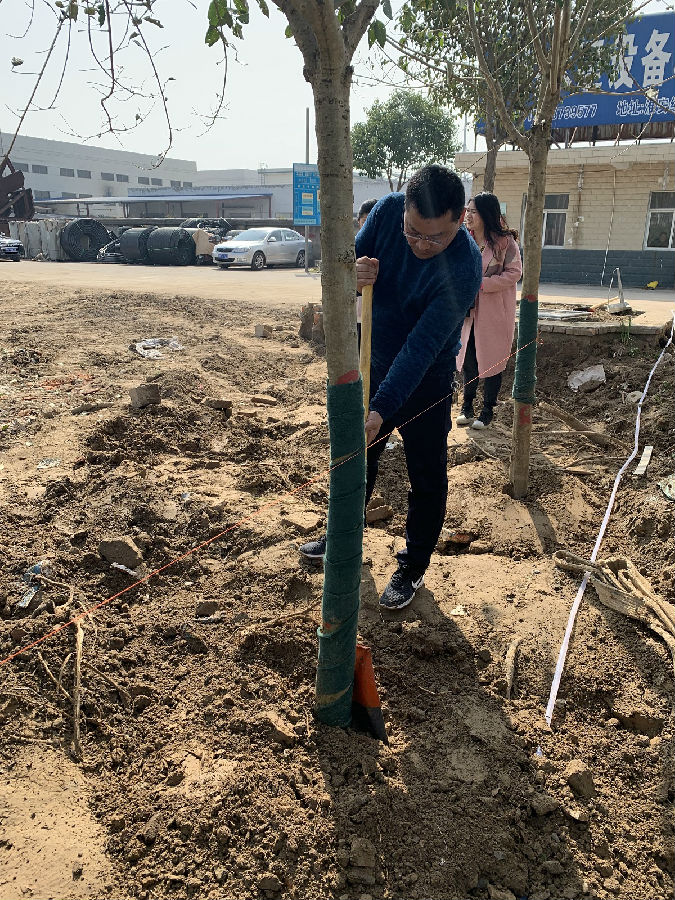 植樹活動開始前,徐書記作了動員講話,參加植樹活動的30多名黨員和志愿者,紛紛熱情高漲、干勁十足,大家丈量拉線、按點挖坑、揮鍬培土,配合協調,各道工序一絲不茍,忙碌的身影隨處可見,植樹現場一派熱火朝天的勞動場景。經過大家的辛勤勞動,30多株大葉女貞樹苗種植在凱通檢測院內,形成一道亮麗的生態、綠色風景線,更顯勃勃生機。