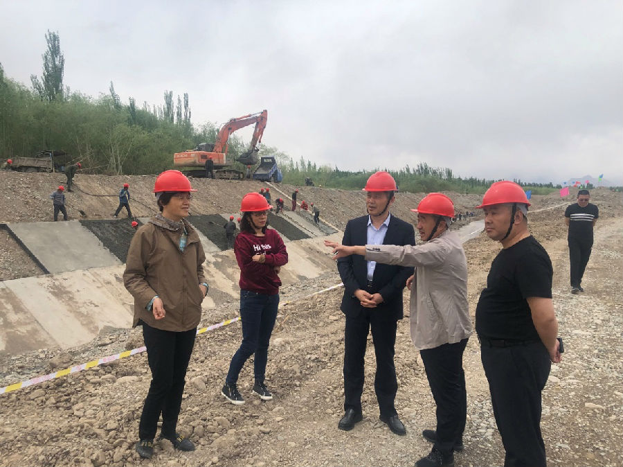 2019年4月26日,江蘇省住建廳高建副廳長、監管處劉紅霞處長、招標辦陳慧玲主任一行在江蘇省住建廳駐新疆辦事處主任袁玉佳陪同下,來到我公司承建的阿圖什市上阿圖什鎮喀爾果勒村段恰克瑪克河防洪壩建設項目,實地看望在艱苦環境下作業的施工人員,并對施工現場的安全、質量、進度等情況進行了檢查和指導。